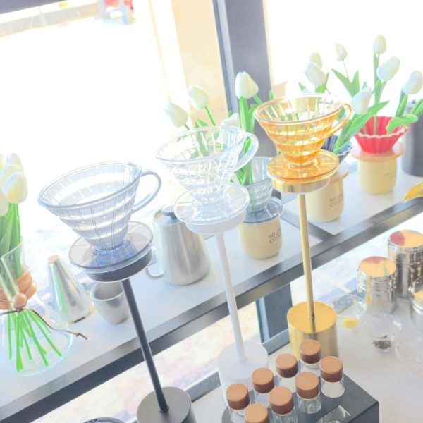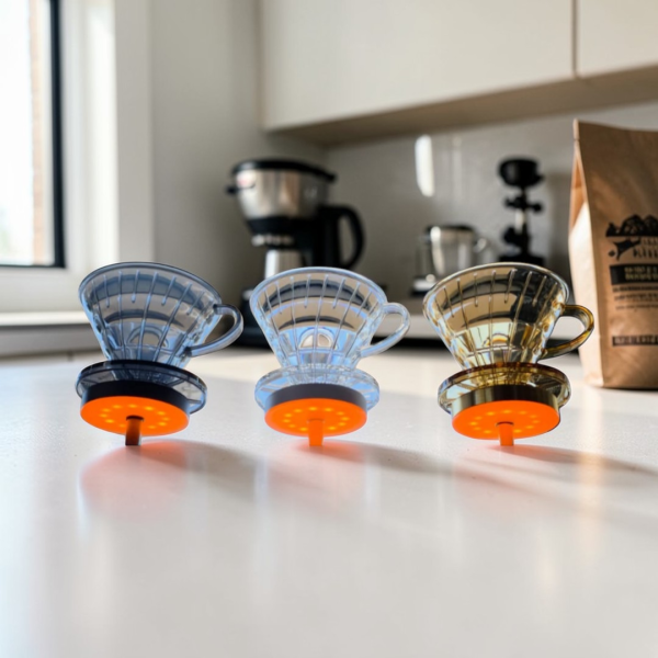 قمع ال V60 الاكلريك مقاس 02 نازل ب ٣ الوان عسلى وشفاف و رصاصي فامية